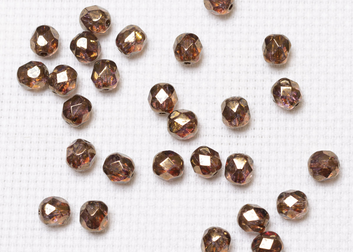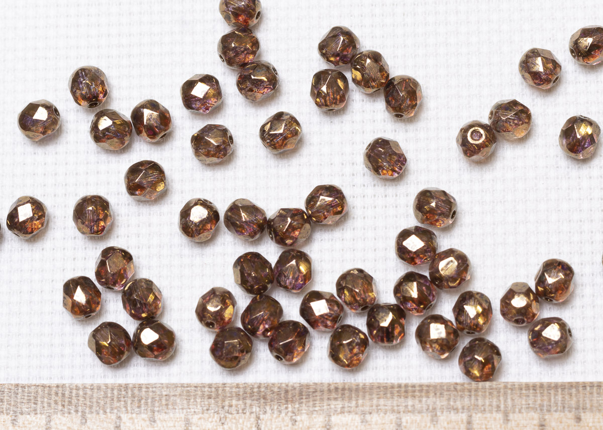 Бусины полированные круглые 6мм 25г (90 штук) 00030/15695 аметист прозрачный, бронзовое сияние